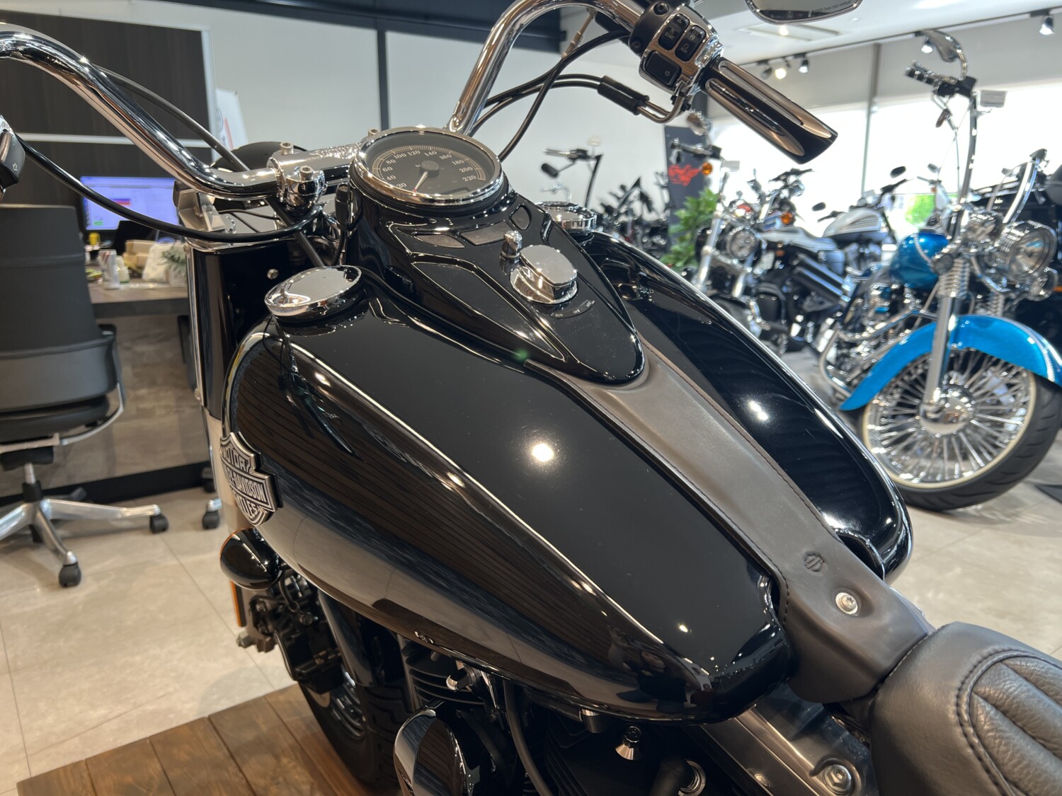 ソフテイルの他のモデルと比較すると低重心で操作しやすいソフテイルスリムが入荷!